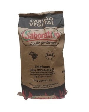 Carvão vegetal selecionado de ótima qualidade. Pacote em papel de 6kg